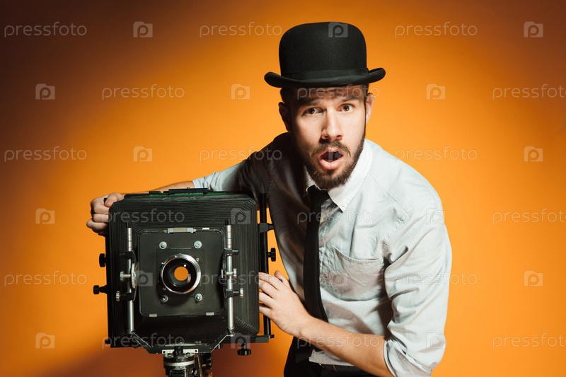 Молодой человек с ретро камеры