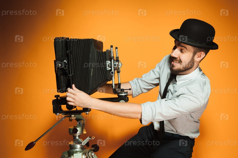Молодой человек с ретро камеры