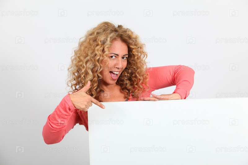 Смешная блондинка женщина Холдинг доска