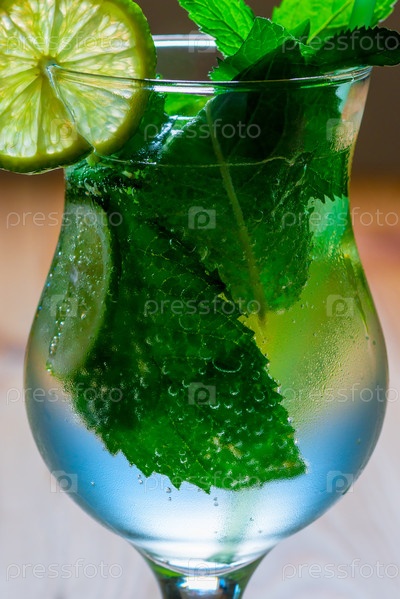 Пузырьков воздуха в монетном дворе листья в Мохито коктейль
