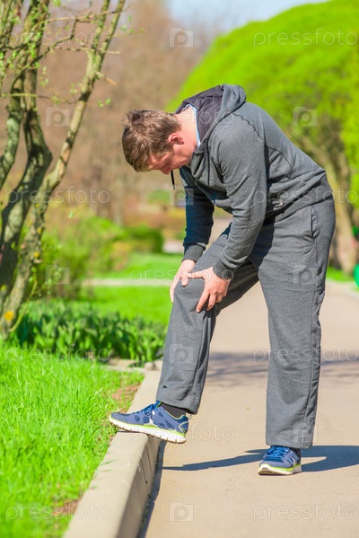 Мыжского спортсмена, потирая больное колено