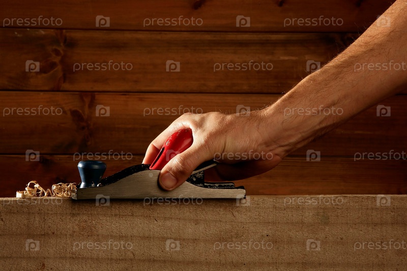 Карпентер, планирования древесины станок инструмент человек руку деревянными фоне