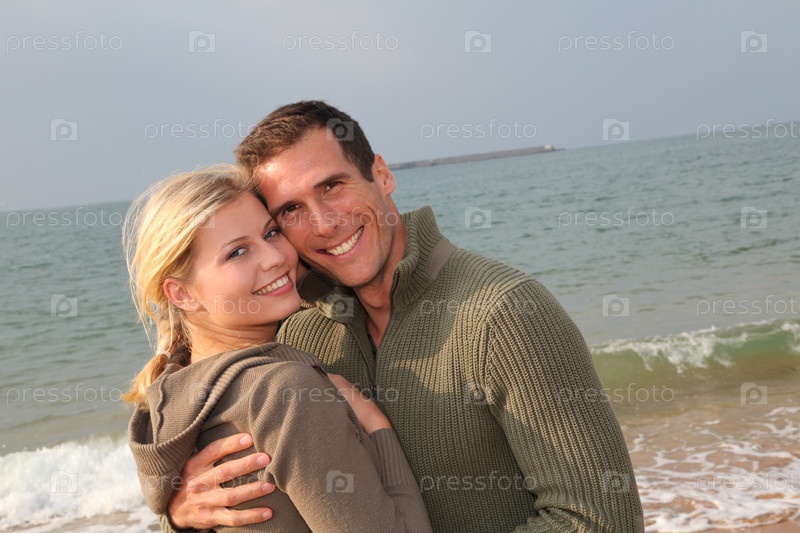 Любители на пляже в осень