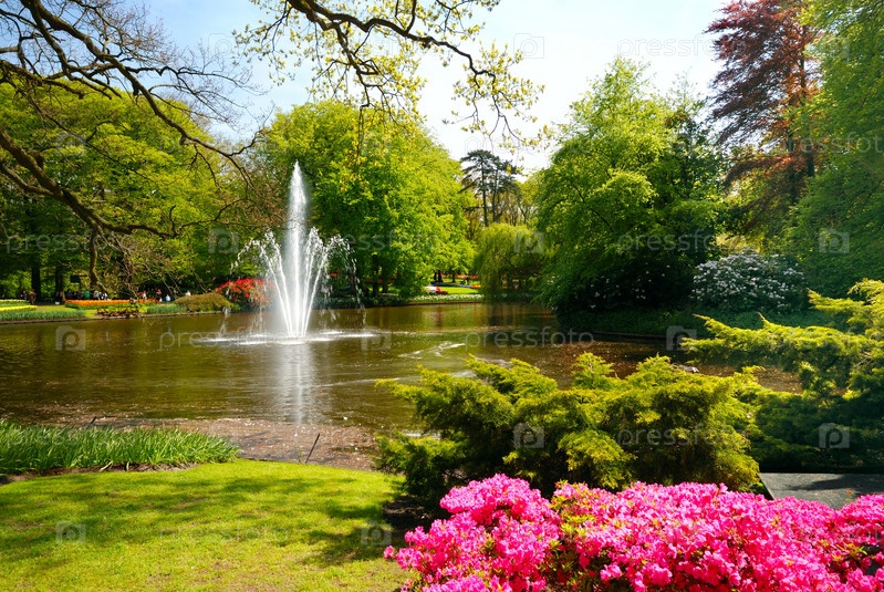 Пруд с фонтаном в Кекенхофе, Лиссе, Нидерланды