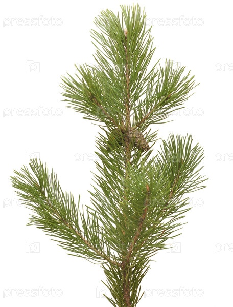 Шишки на сосновой ветке на белом фоне