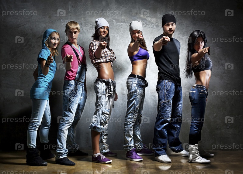 Танцор группы указывая. Контрастность цвета