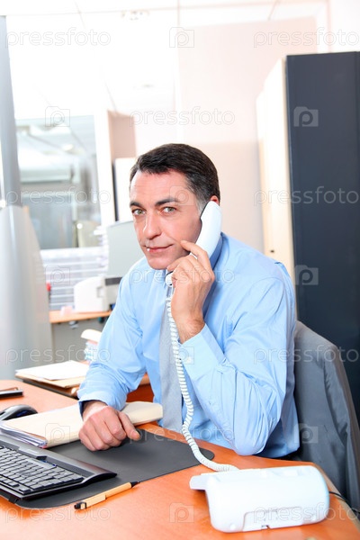 Бизнесмен в офисе, по телефону