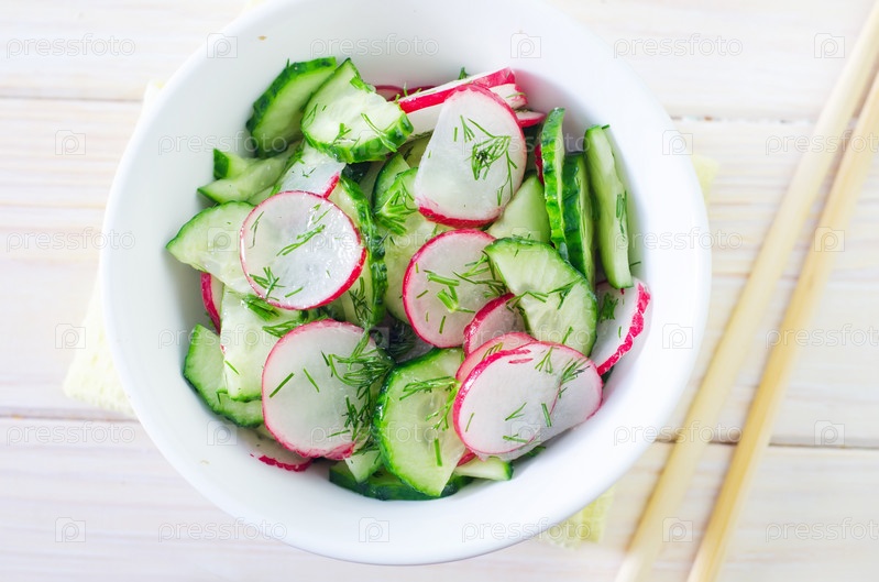 Свежий салат с огурцом и редисом