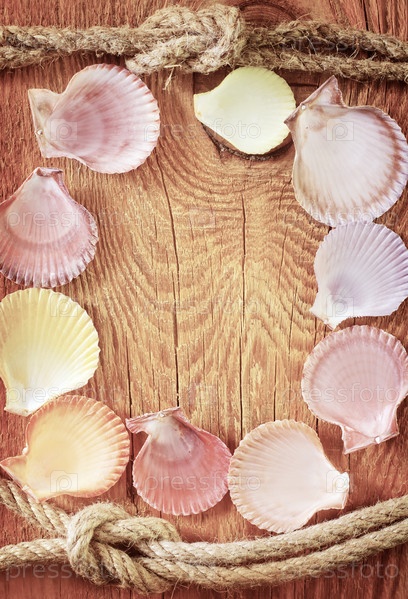 Ракушки на деревянных фоне