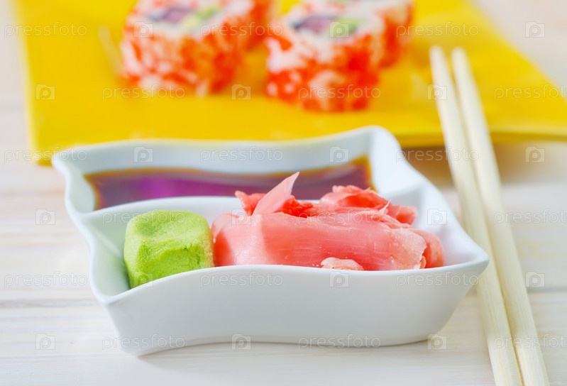 Соевый соус, васаби и имбирь