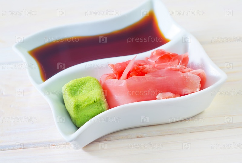Соевый соус, васаби и имбирь