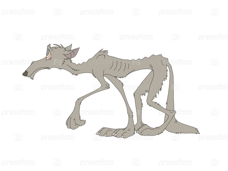 Голодный пес на белом фоне