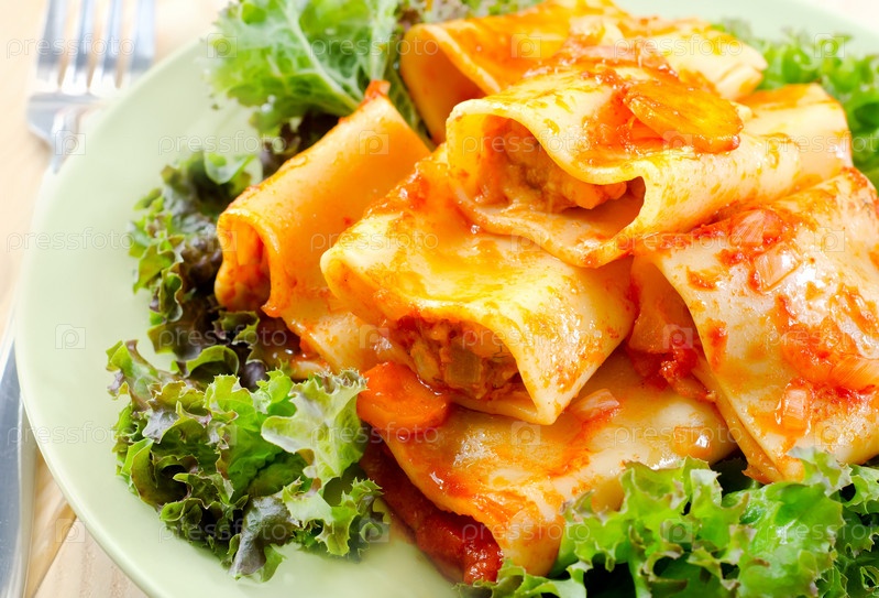 Паста с соусом и салатом