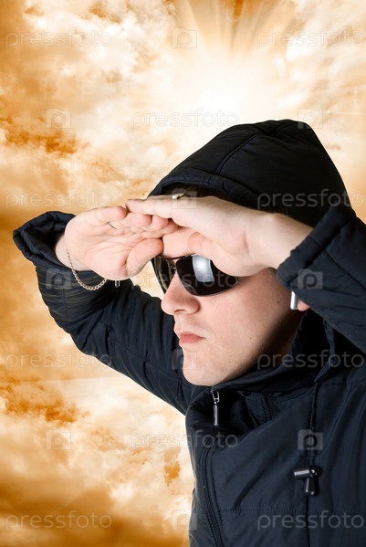 Молодой человек в солнцезащитных очках смотрит вдаль