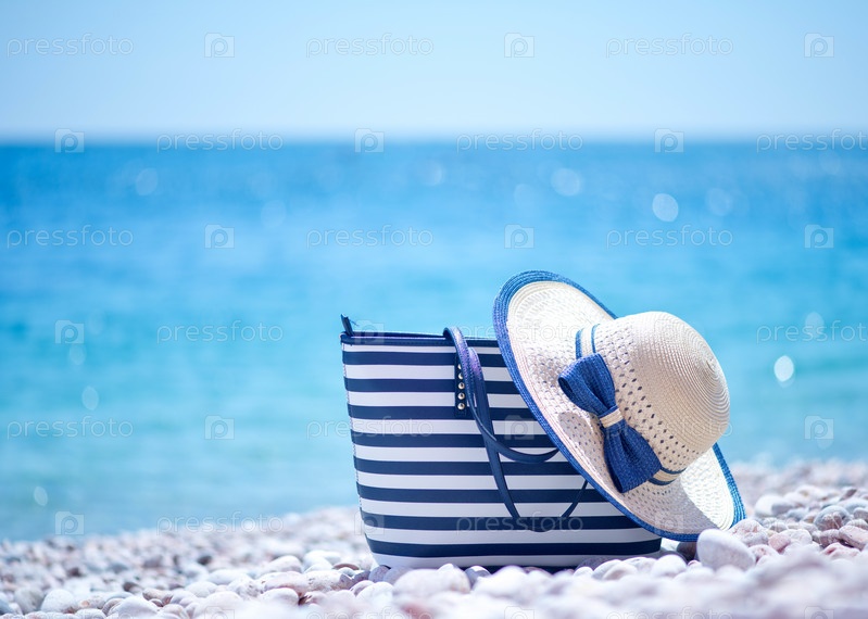 Сумка и шляпу на пляже