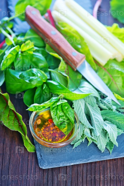 Свежие травы и овощи