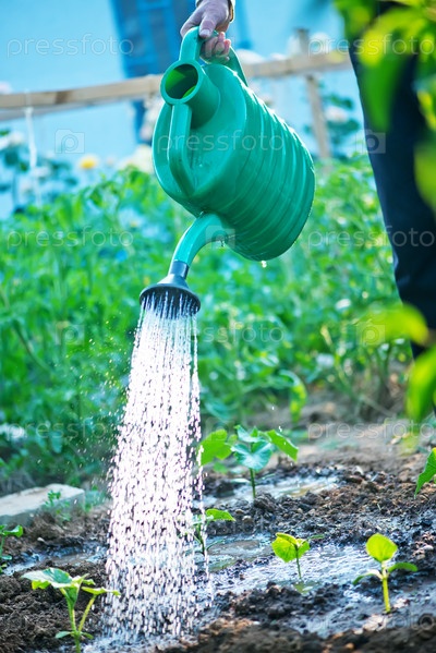 человек, поливающий сад