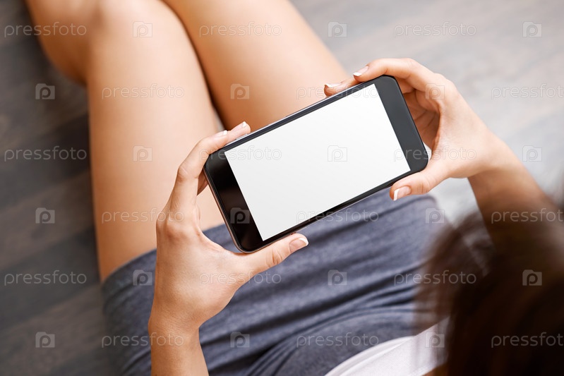 Женщины держать устройство черный Фаблет