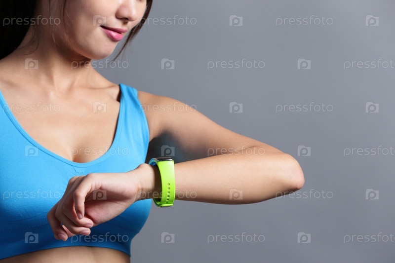 Спортивные женщина использование носимых часы