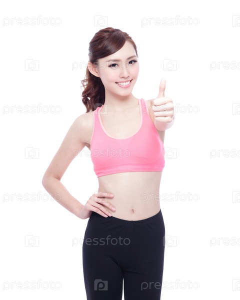 Девушка спорта показывает палец вверх