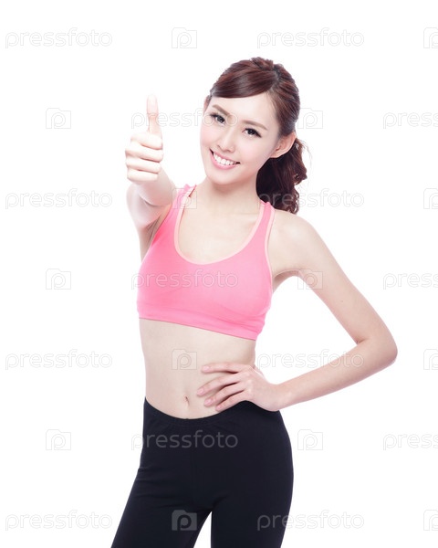 Девушка спорта показывает палец вверх