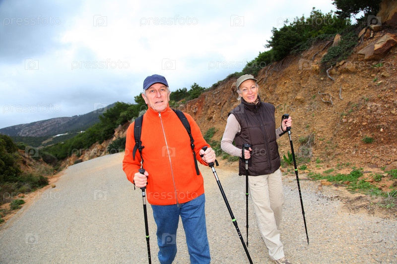 Пожилая пара на пешеходной прогулке