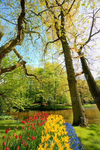 Вид на пруд Парк Кекенхоф, Нидерланды