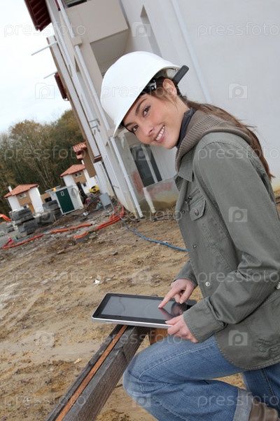 Инженер с белым безопасности шлем стоя на строительной площадке