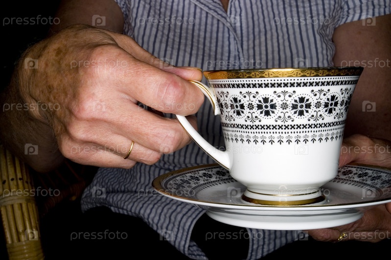 Фотография пожилых людей руки, держа чашку чая