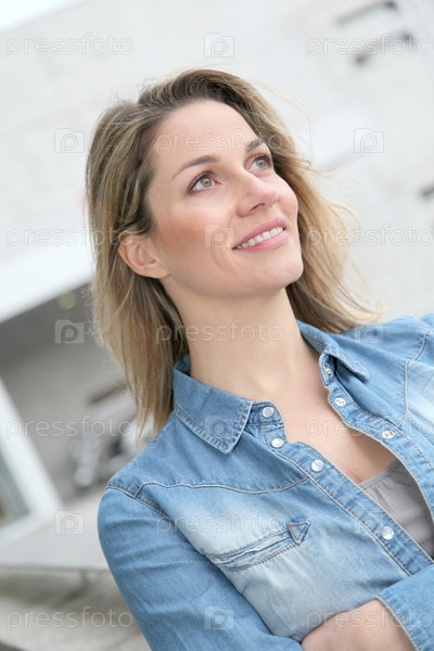 Красивая блондинка женщины в городе