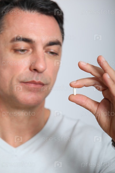 Человек, пристально глядя на таблетки