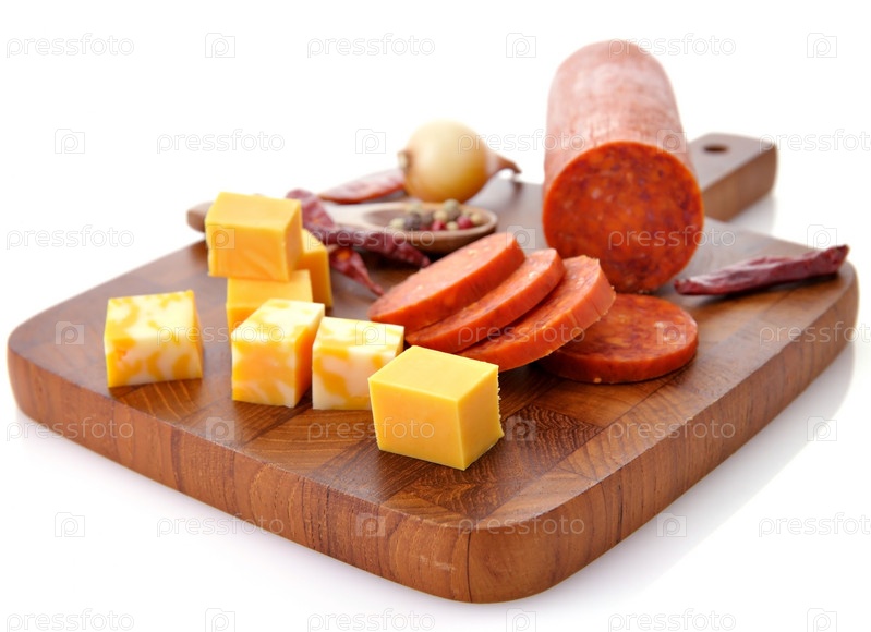 Пепперони салями и сыр на разделочную доску