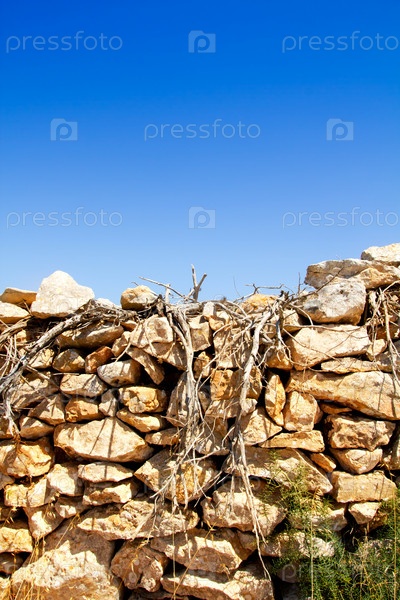 Средиземноморский сушеные филиалов и кирпичные стены как символ Балеарские
