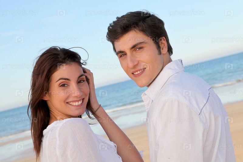 Портрет прекрасная пара на пляже летом