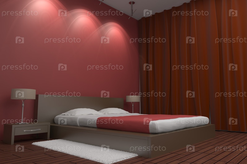 Современная спальня с красной стеной