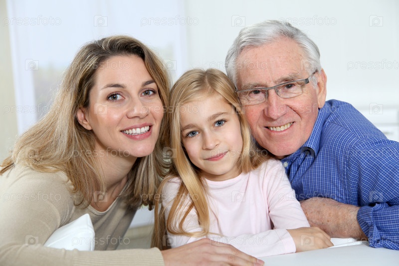 Портрет улыбаясь дедушка, мать и ребенок