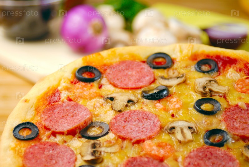 Пепперони Пицца с грибами и оливками