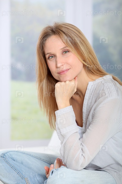 Красивая блондинка женщина, отдыхаете дома