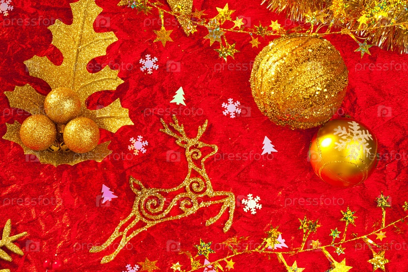 Рождественская открытка фон Золотой и красный