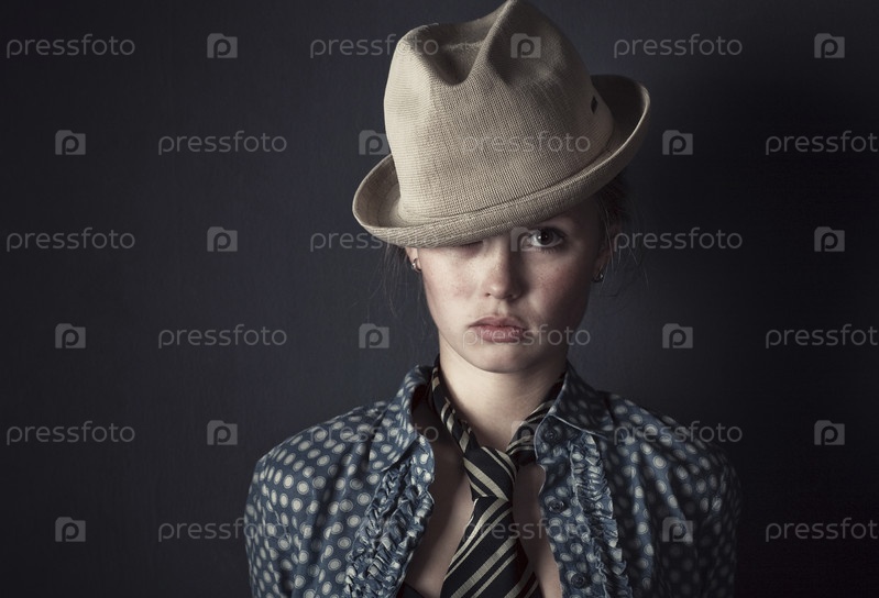 Женщина в шляпе и галстук портрет