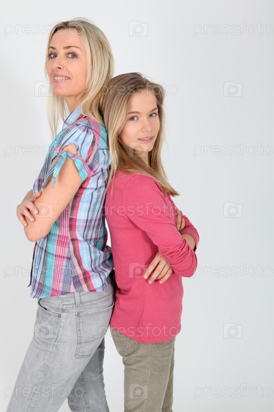 Мать и дочь стоя спиной к спине