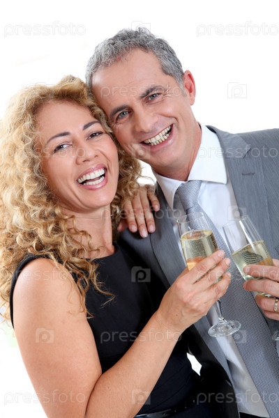 Пара празднует канун нового года с шампанским