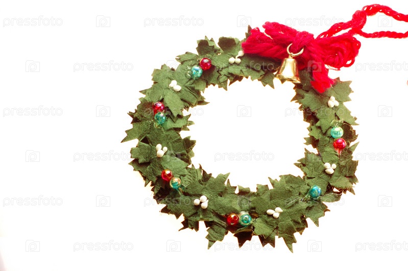 Венок украшен небольшой золотой колокольчик, изолированные на белом фоне