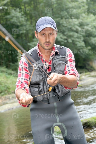 Рыбак в реке с лету удочки
