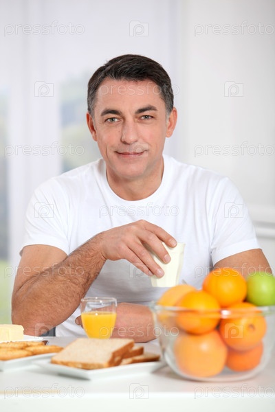 Улыбаясь взрослый человек, Завтрак