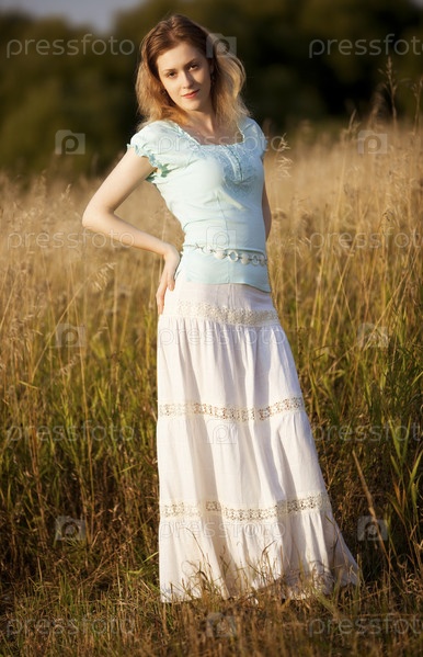 Молодая женщина на лето поле