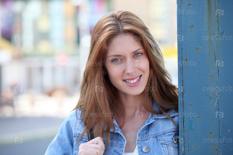 Красивая женщина, стоя в городе