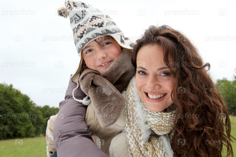 Крупным планом матери и дочери в сельской местности
