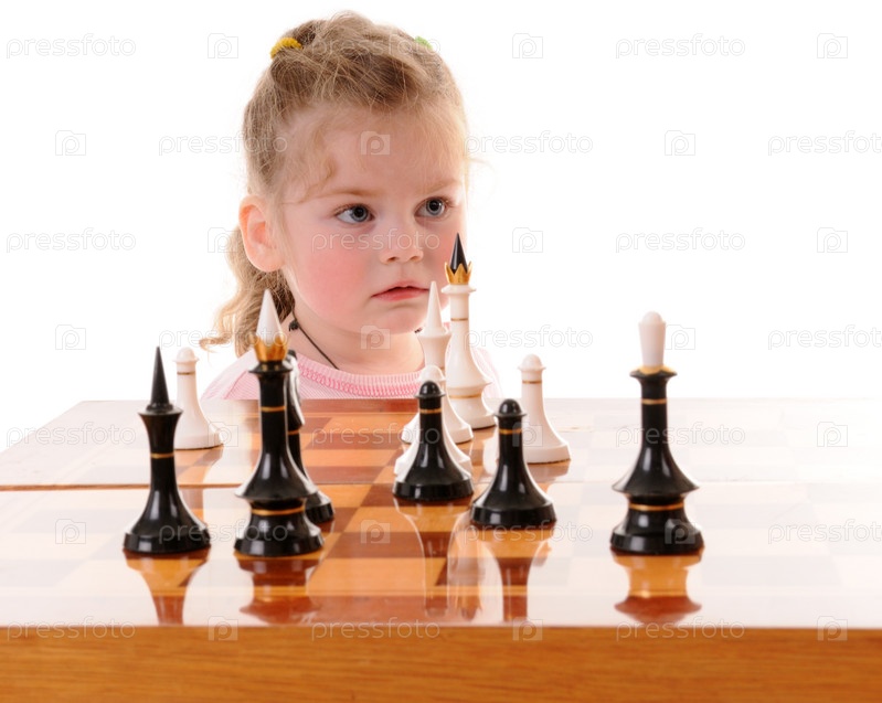 Маленькая девочка перед шахматной доской