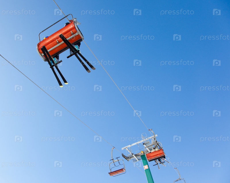 Лыжники едут в кресельная канатная дорога